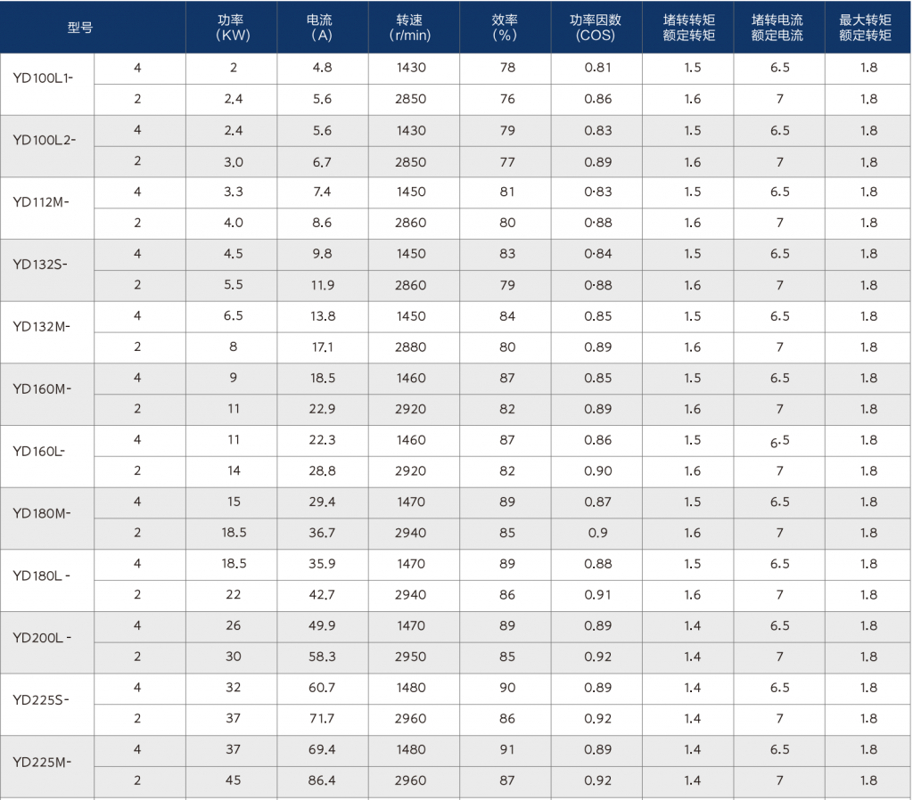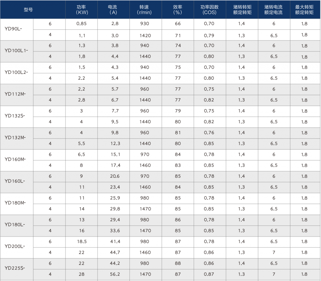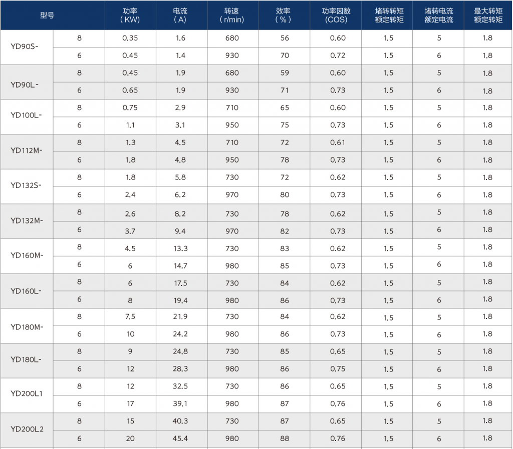 YD series technical parameters(2)
